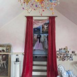 New Orleans designer Elizabeth Sullivan‘s amazing “Sweet and Sour” nursery. Loving the wall shelving displaying all the children’s books and the white and turquoise pin stripe ceiling. Many charming little details in this nursery design.