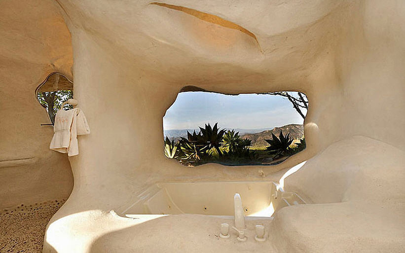 A true curiosity, this cave themed house perched up high on a mountain overlooking the ocean in Malibu California was designed by Dick Clark and is on the market for $ 3.5 million.