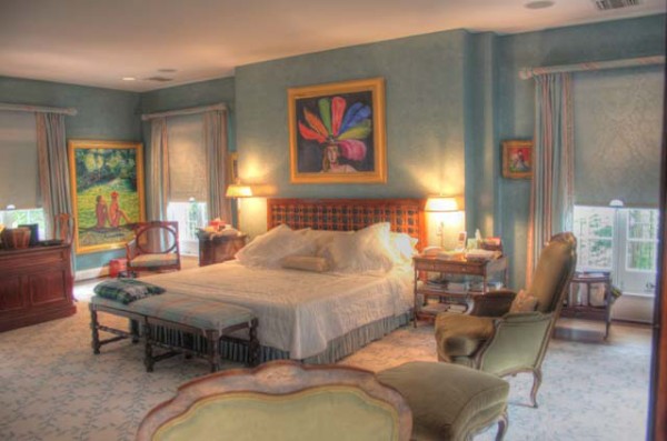 Tuscan Style Home in Rhode Island → pastel-blue-green-bedroom